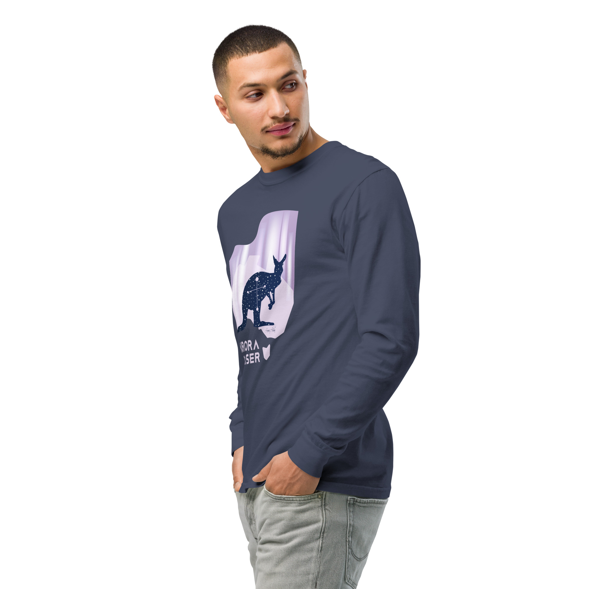 Celebrate the spirit of Australia with this bold and meaningful long sleeve tee. The “Aurora Chaser” design showcases the silhouette of a kangaroo filled with the Southern Cross constellation against a map of Australia, illuminated by soft aurora-inspired colors. It’s a wearable tribute to the southern skies and the beauty of the night.